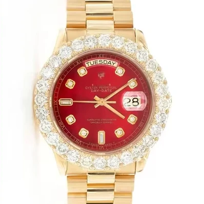 High Quality 40mm Moissanite Bezel Luxury Business Antique Watch Custom Logo High End Red Dial Stainless Steel Wrist Watch